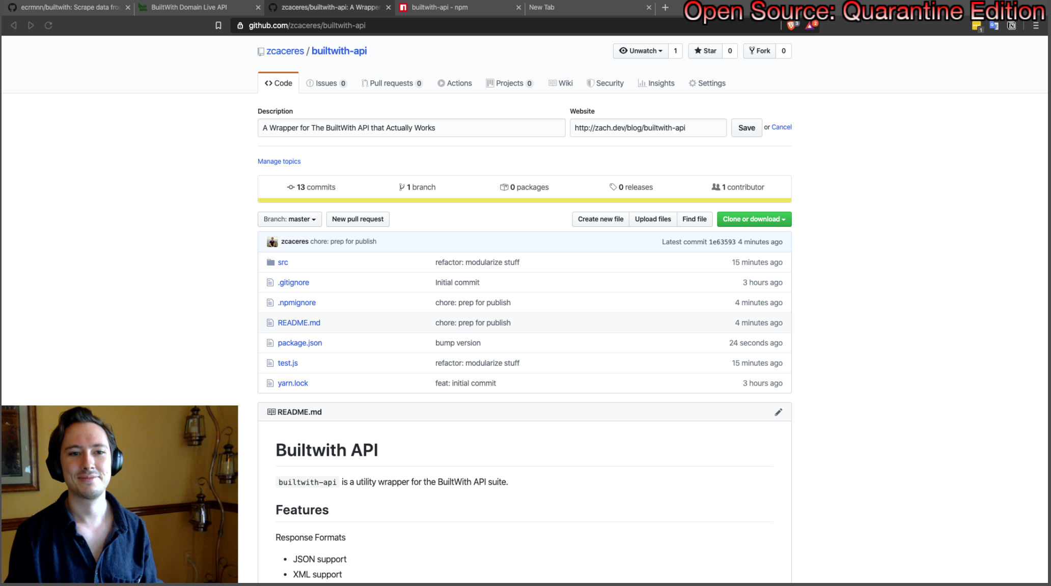 While streaming on Facebook Live, I built and published a module to use all of the APIs offered by BuiltWith.com. An assortment of friends came by the stream and it was a fun and social way to code. As far as I know this is the only working module for BuiltWith on NPM.